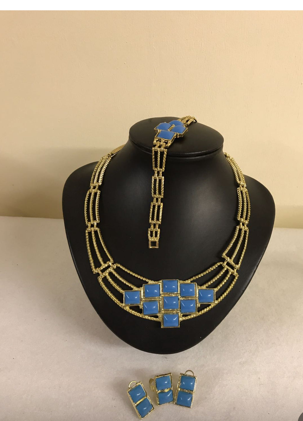18k Gold Plated Necklace Set With Turquoise 4pcs Set.