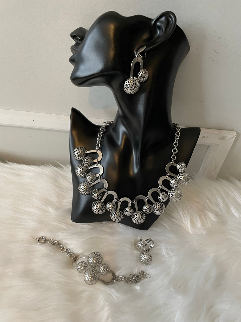 Statement 18k White Gold Plated Earring , Pendant And Chain