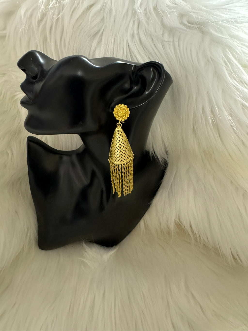 18k Gold Plated Long Chain And Earring Orange And Gold Beaded Necklace