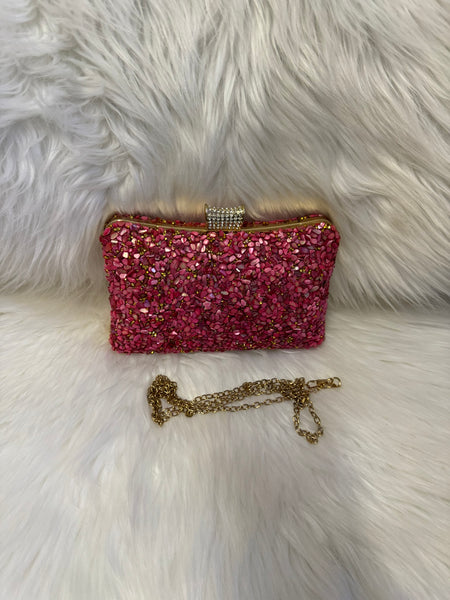 Style: Fully lined clutch with long chain